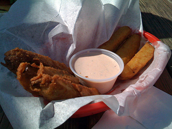 Six spears were covered in an extremely heavy batter that was as disenchanted with the entire experience as I was. Upon your first bite, the batter gave hold of the pickle and the next thing you know, you’re left with a hard, greasy husk in your hand, and a limp pickle in your lap. Three of the spears didn't even have enough batter to encase the pickle. I shared this order with a friend of mine and even then we didn’t get through the entire basket. Sad times indeed.