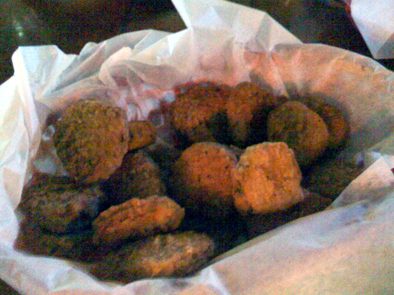 A friend and I were at The Tank yesterday for "Tecate Mondays" and stumbled across these. They aren't actually on the menu but the awesome lady that works behind the bar there overheard our conversation and immediately declared that their fried pickles were the best in town.