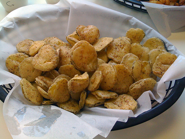 As you can see, these pickles were sliced just the way I like them. And not only that, the batter was light, yet crispy, and perfectly seasoned. The dipping sauce that kept these chips company was some of the best I’ve had - Argentine Garlic & Herbs. It was a perfect combination of flavors and textures. The one thing that kept us from polishing off the entire basket, and ordering up another, was the insane grease factor. These were the greasiest pickles I have yet to come across. Once they learn to drain out all that excess before plating them, this basket will be right up there with the best.