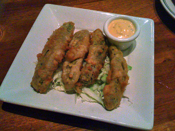 I know you are probably looking at the photo and aren’t to impressed, but don’t let it fool you. The thickness of the spears would normally turn me off, but not the case here. These pickles were sour and loaded with garlic - almost lip puckering so. Definitely not the same meager spears that are served with the burgers. The tempura style batter was so massively light and crunchy, it almost deserved an appetizer of its own. The sherry mayo dipping sauce pretty much just sealed the deal. Just you can’t go wrong for the price of these pickles.